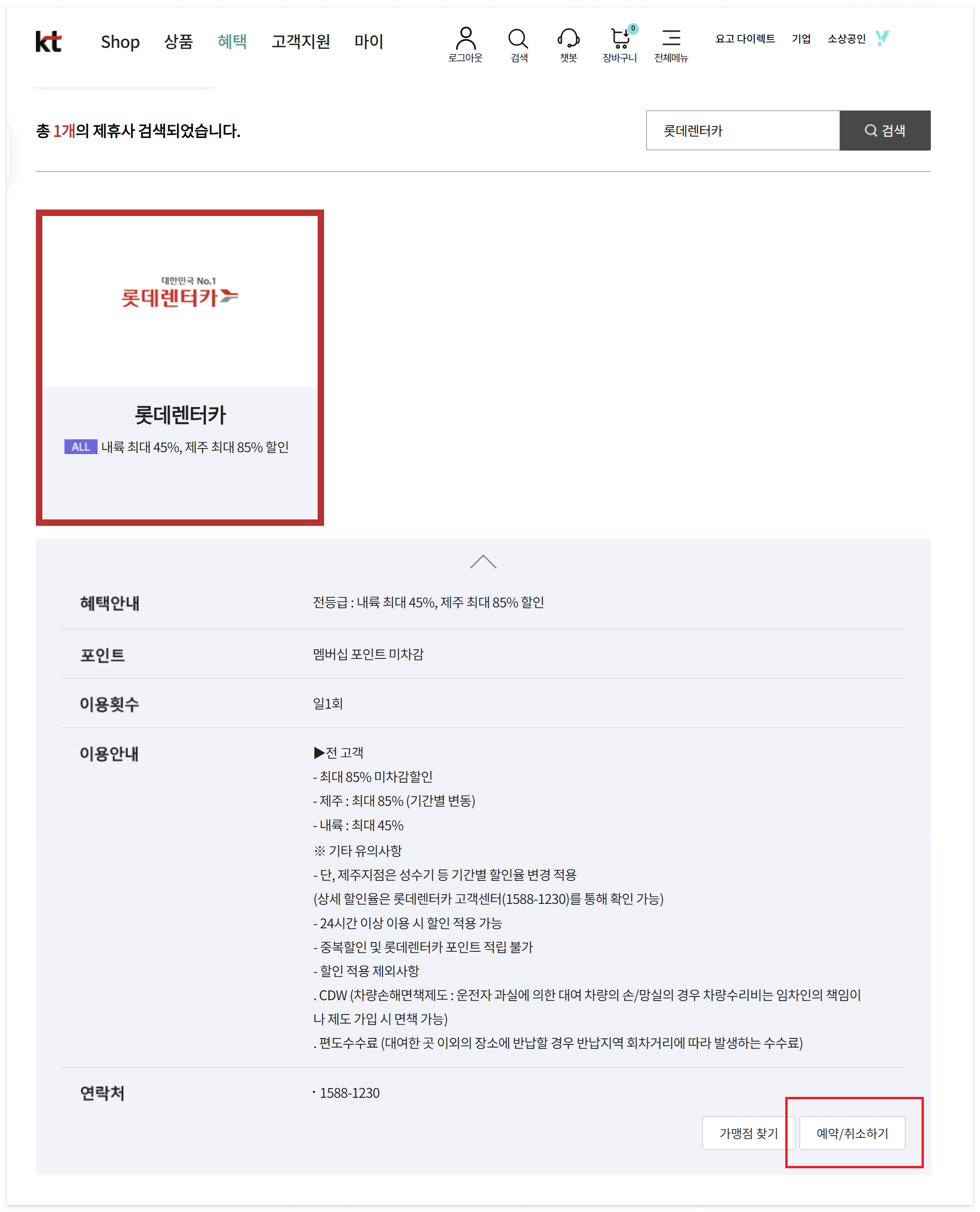그 다음에는 '롯데렌터카' 검색예약하기 클릭하시면 됩니다. (아래사진)