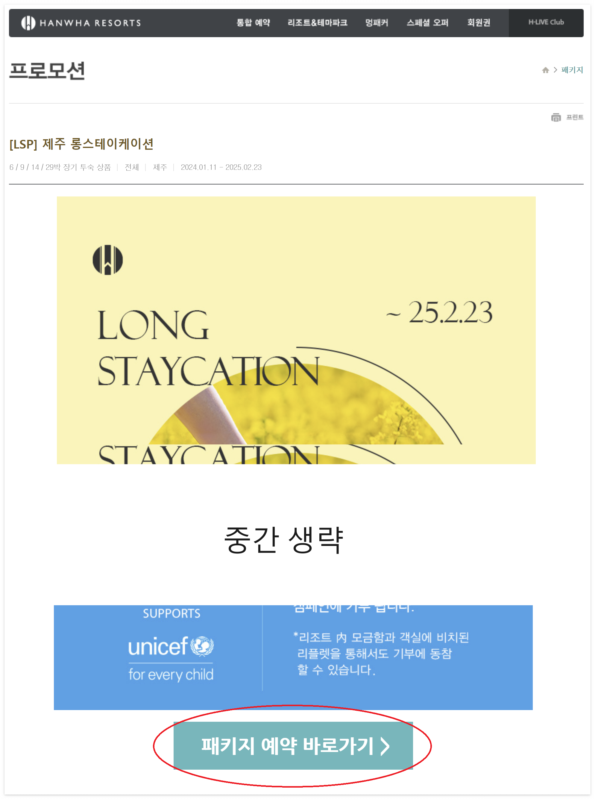 여러 프로모션들이 나오는데, "제주 롱스테이케이션"을 선택합니다. (위 사진)