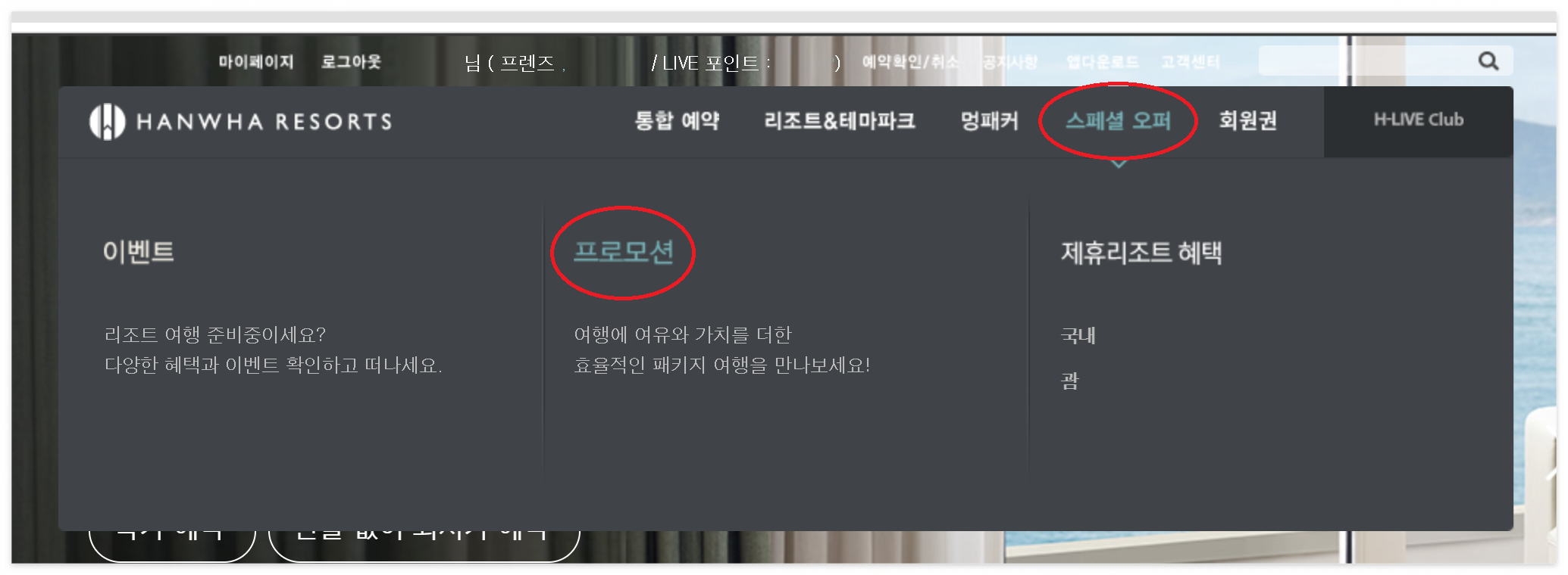 | 제가 예약한 방법 (한화리조트 공식 홈페이지) |