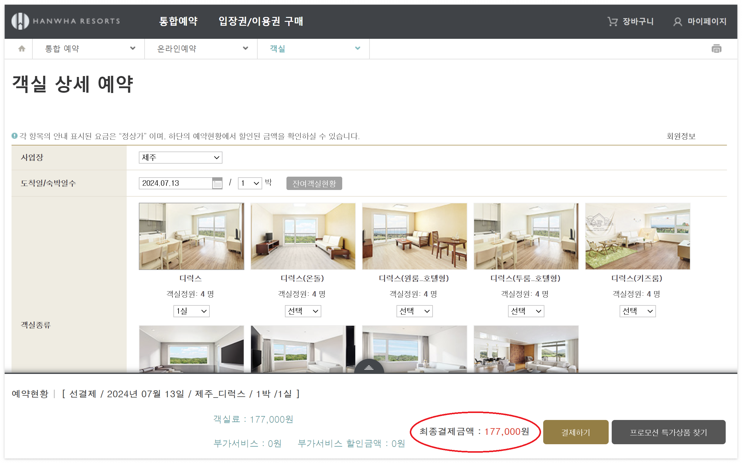 | 한화리조트 공식 홈페이지 | 177,000원 |