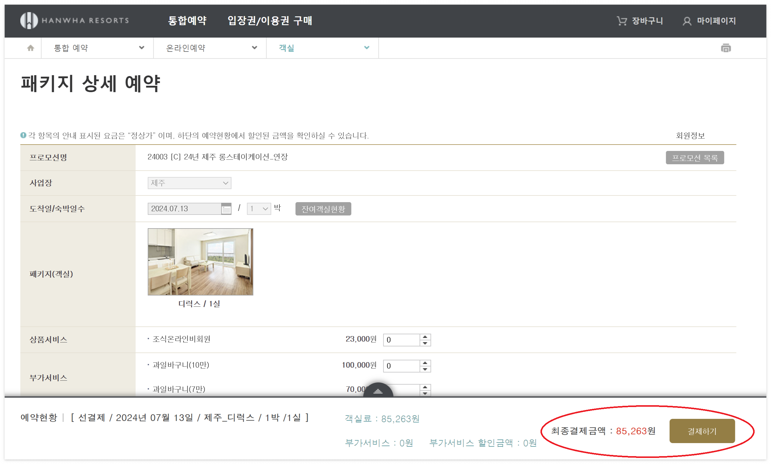 다른 이상한 사이트도 아닌 한화리조트 공식 홈페이지에서, 8만 5천원에 예약하실 수 있습니다!